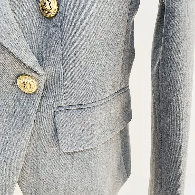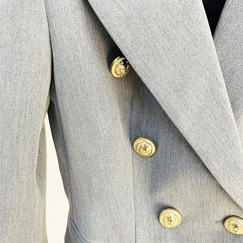 Wysoka dobrej jakości, najnowsze 2021 projektant kurtka styl gwiazdy damskie klasyczne guziki z lwem podwójne piersi dopasowany Blazer blado Grey