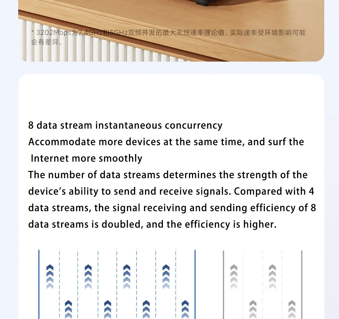 Wi-Fi 2.4G: 4×4 (obsługuje protokół IEEE 802.11n, teoretyczna maksymalna prędkość 800 mb/s)