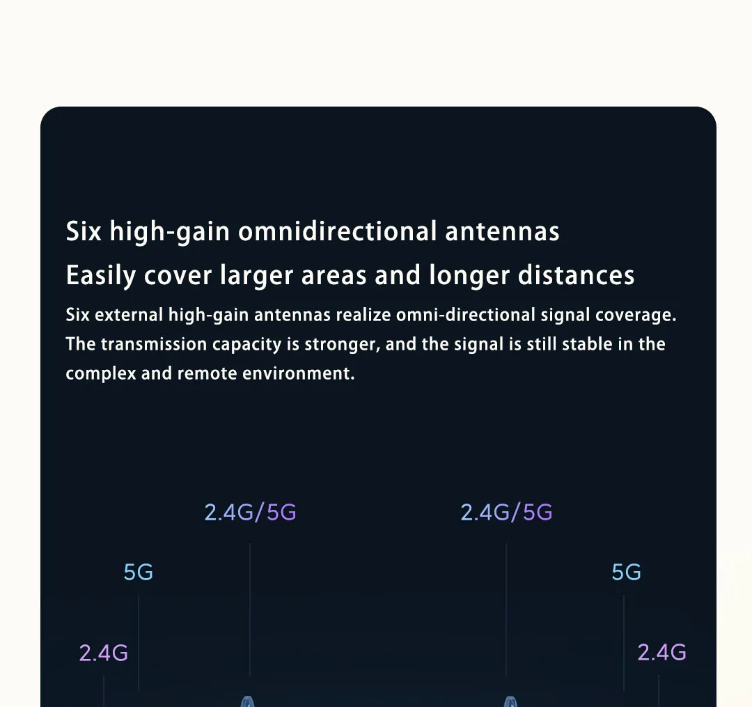Antena produktu: 6 zewnętrznych anten o wysokim zysku