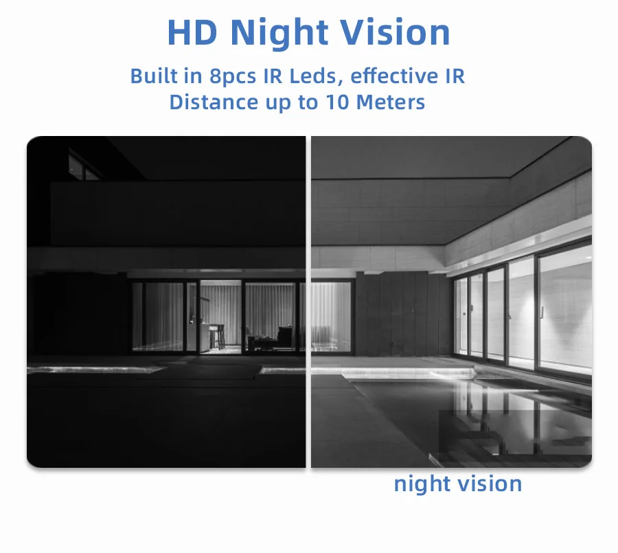 Zbudowany w 8 sztuk diod podczerwieni, efektywna odległość IR do 10 metrów