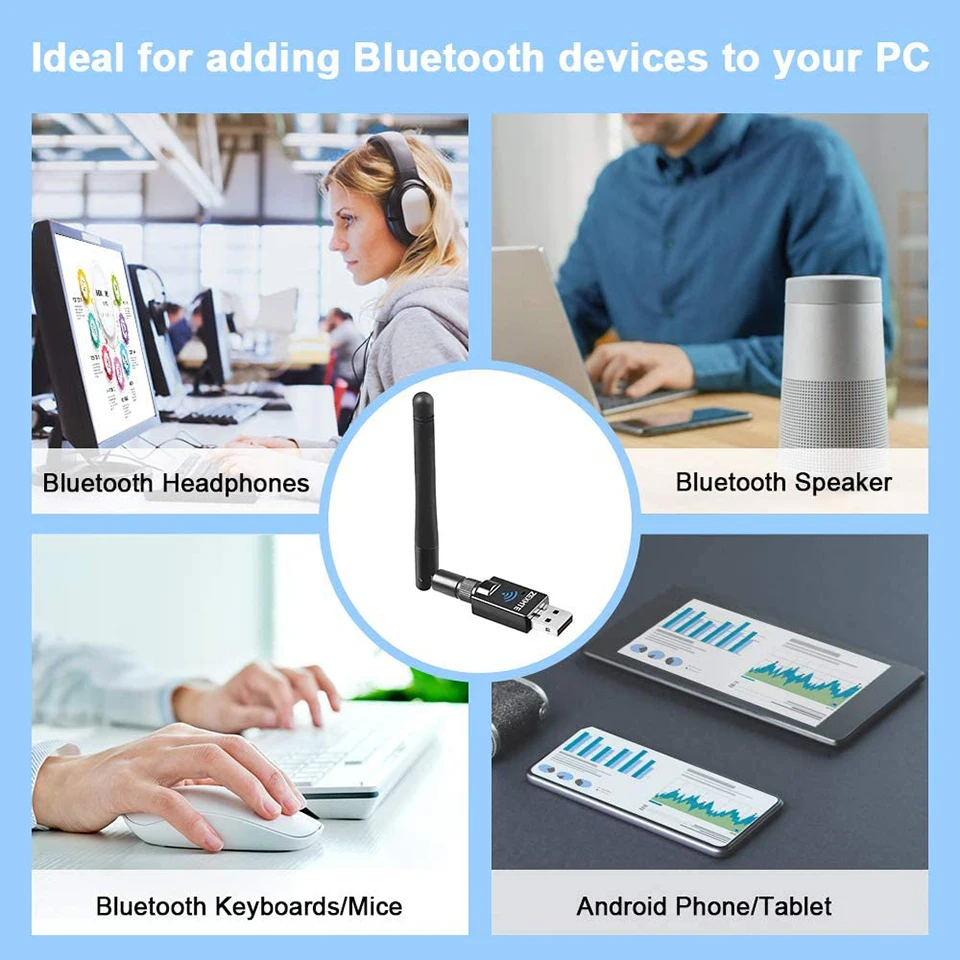 ❇Zwiększ zdolność przeciwzakłóceniową i stabilność oraz zmniejsz utratę wydajności transmisji spowodowaną zakłóceniami w paśmie częstotliwości 2.4 GHz. Szybsza i dalsza odległość robocza niż Bluetooth 4.0. Obsługuje głośniki z Bluetooth, zestawami słuchawkowymi, klawiaturami, myszami, drukarkami Bluetooth i słuchawki stereo.