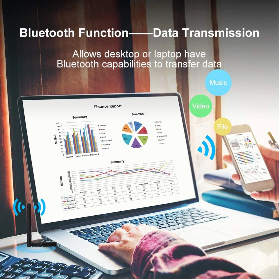 100M USB Bluetooth 5.0/5.1 Adapter nadajnik 328ft bezprzewodowy Bluetooth Audio odbiornik klucz USB dla komputer stancjonarny Windows 7/8/10/11